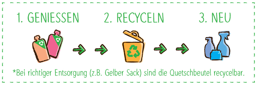 Mit den neuen, verbesserten Quetschbeuteln tun wir der Natur einen großen Gefallen, indem wir sie am besten gleich zu Hause selbst recyceln. ♻️🌳